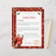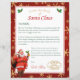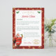 Personalize this letter from Santa with your child's name and text. This design features a watercolor Santa, mistletoes, an oval Merry Christmas stamp and faux gold snowflakes red border.