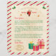 Personalize this letter from Santa with your child's name and text. This design features a Santa, presents, mistletoes, an oval Merry Christmas stamp and red green striped border. On the back is red and green striped background.