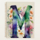 The front cover of this elegant planner features a stunning "M" adorned with vibrant watercolor art in jewel tones and complementary pastels. The bold initial is beautifully framed by delicate flowers and leafy greens, offering a touch of sophistication to your daily planning.