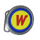 Flashy and fun superhero style belt buckle features your custom initial monogram in a bright and colorful primary color scheme of red yellow and blue. Great for the super dad, or anyone who feels like they have special powers. Custom personalized letter for your initial or name.