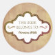 Vintage look bookplate label stickers- Vintage, stained paper parchment background. In the center is a an elegant, brown emblem with curlicues that looks faded and discolored. Reads 'This Book Belongs to' in chic, brown lettering. Name in script underneath. Click Customize option to change text colors, size, and font styles. Perfect vintage style bookplates for book collectors.