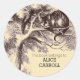 Cute, classic book bookplate label stickers for personal library identification- 'This Book Belongs to' in elegant lettering with custom name underneath. Vintage, sepia background of classic illustration of the grinning Cheshire cat in the tree from 'Alice's Adventures in Wonderland' by Lewis Carroll. Click Customize option to change text colors, size, and font styles. Useful gift for classic book lovers and bookworms, or favors for a Bring a Book shower.