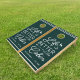 Upgrade your outdoor setup at your woodside abode with this cute rustic cornhole set featuring the phrase "life is better at the cabin" in white lettering accented with a deer and an arrow on a hunter green background. Personalize with your family name and/or year established beneath.