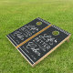 Upgrade your outdoor setup at your woodside abode with this cute rustic cornhole set featuring the phrase "life is better at the cabin" in white lettering accented with a deer and an arrow on an off-black charcoal background. Personalize with your family name and/or year established beneath.
