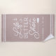 Upgrade your outdoor setup at your seaside abode with this cute personalized beach towel featuring the phrase "life is better at the shore" in white lettering accented with an anchor and an oar. Personalize with your family name and/or year established beneath.
