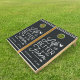 Upgrade your outdoor setup at your farmhouse abode with this cute rustic cornhole set featuring the phrase "life is better on the farm" in white lettering accented with a rooster and an arrow on a charcoal off-black background. Personalize with your family name and/or year established beneath.