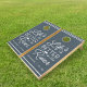 Upgrade your outdoor setup at your forest abode with this cute rustic cornhole set featuring the phrase "life is better on the river" in white lettering accented with an anchor and an oar, on a gray-blue background. Personalize with your family name and/or year established beneath.