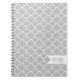 An elegant notebook with a stylish light gray and white quatrefoil pattern, personalized with the name or text of your choice.