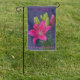 Flag bracket is super easy to assemble. There is a prong fork that goes into the ground. I dug a shallow hole to bury the prongs and still had enough height. Reinforced stitching on for the flag opening. Colors are true to the website. Mona Lisa's sign with the text is easy to read, the text is clear and not blurry.