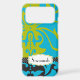 Personalized Lime, Aqua, Black and Gold Damask Vibe iPhone Case - Change Lime to any color by clicking customize