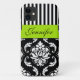 PERSONALIZED LIME GREEN, BLACK DAMASK STRIPED Case-Mate iPhone CASE