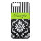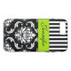 PERSONALIZED LIME GREEN, BLACK DAMASK STRIPED Case-Mate iPhone CASE