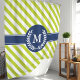 Personalized Lime Green & Navy Striped Monogram Shower Curtain