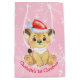 Personalized Lion 1st Christmas Baby Girl Pink Medium Gift Bag