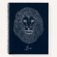White contour graphic drawing of a lion's head on a navy blue background with monogram name design.