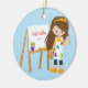 Cute & Bright little artist girl Christmas Ornament set on a blue polka dotted background featuring a brunette artist girl with an easel & paints. A Wonder Christmas gift sure to be treasured for many years to come.