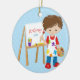 Cute & Bright little artist boy Christmas Ornament set on a blue polka dotted background featuring a Brunette boy with an easel & paints. A Wonder Christmas gift sure to be treasured for many years to come.