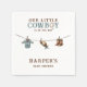 Complete your "A Little Cowboy Is On The Way" baby shower with these matching customizable napkins! Featuring a rustic clothesline with a tiny denim vest, cowboy hat, and boots, these napkins perfectly complement your Western Rodeo baby shower theme. The phrase "Our Little Cowboy Is On The Way" adds a sweet touch, making them a charming and functional addition to your celebration. Personalize them with the mom-to-be’s name or event details for a unique keepsake. Perfect for a country, cowboy, or rodeo-themed baby shower, these napkins bring a stylish Western flair to your party! #BabyShower #CowboyBabyShower #WesternTheme #RodeoParty #LittleCowboy