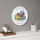 Pretty Christmas clock with a pretty watercolor log cabin and pine trees.