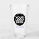 Create your unique 16oz personalized purple text Beer glasses uploading your business logo and adding your custom text. A simple and professional design will impress your guests! The American style pint glass, also known as a shaker glass, is perfect for beer, cocktails or any drinks. Surprise your guests for corporate party, weddings, nightclubs, and any kind of celebration. The beer glass template is fully customizable. You can add logo, photo, clipart or images to the back side too. Add your custom text with this minimalist and professional sans serif font: website, slogan, company name, newlyweds name, event date. Your personalized images will be printed in full color photo quality digital print. The glass is made with top quality Libbey Barware.