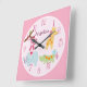 This clock is so cute! Loved that I could personalize it with my daughter’s name. She just got her big girl bed so we decorated with unicorns. I thought this would be good to have in her room. We are using it to help her learn how to tell time. She absolutely loves it! The color was just like the design on the website. Everything turned out just as I expected.