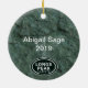 Lightweight, smooth, pure white ornament with nice sheen. Perfect size to be seen from across the room ... and to attract closer inspection! Price was great for ordering enough for the whole family! Clear, bold black design just as requested. Matches the order exactly. Just so nice!