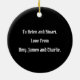 Lightweight, smooth, pure white ornament with nice sheen. Perfect size to be seen from across the room ... and to attract closer inspection! Price was great for ordering enough for the whole family! Clear, bold black design just as requested. Matches the order exactly. Just so nice!