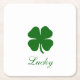 Personalized Lucky Green Clover Square Paper Coaster