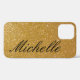 Personalized luxe faux gold glitter iPhone 12 case. Luxurious golden background texture with elegant script typography text. Chic design with fake glimmering shiny sparkles. Luxury style gift idea for stylish women and girls.