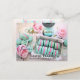 Macarons recipe postcard with a pretty image of colorful macarons with pink roses. You can delete the gold stylized Happy Easter text if you do not need it and add your own personal recipe on the back.