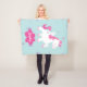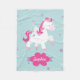 Personalized Fleece Blanket featuring a Cute magical unicorn flying in the sky with purple stars. Cute and fun design for special for a girl who loves unicorns and magical ponies. Custom monogrammed gift.