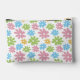 This toiletry bag, travel accessories, or make-up essentials pouch design features a stunning combination of blush pink, light sky blue, spring green, and corn yellow colored floral pattern on a crisp white background. The variety of this color combo creates a sunny and girly summer effect. The pattern is ornate and elegant, with a touch of country cottage and summery flair. There is also room to customize or personalize with a monogram or initial of your choice. Whether looking for a chic and modern style or a vintage and retro trend vibe, this pattern will suit your taste and personality.