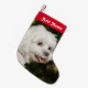 Perfect! Exactly what I ordered! I uploaded a picture of my blue chow, and the screen print was incredible. the back side of the stocking was the red and black checkered print. my puppy's name was also printed on the cuff of the stocking. PERFECT! Highly recommend this product! My puppy's name was screen printed onto the cuff of the stocking, the font was perfect!