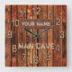 PERSONALIZED Man Cave Wall Clock with Your NAME or Text typed into the text boxes to your right. Rustic old barn board looking Man Cave Clock will give ownership to his special room. To Change the "Man Cave" text to YOUR TEXT or Delete it, see both text boxes to your right. Lots of cool man cave gifts for guys who love rustic old decor.