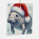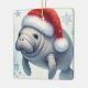 Personalized Manatee with Santa Hat Ceramic Ornament