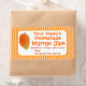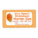 These personalized canning jar labels will show off your homemade goodies. They have an image of a mango with an orange checkered border pattern.