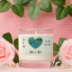 Celebrate your special location and date with this charming, custom-labeled scented candle. The label features a heart-shaped global map or image of your choice, and customizable text fields for names "Jack + Jill," the date "Jan 01 20XX," and the location "San Diego California". This unique candle makes a perfect destination wedding favor, engagement gift, or anniversary keepsake to commemorate a favorite place or a new home.