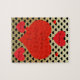 Fully customizable black and golden hearts patterned puzzle with his and her names on red hearts popping the question: will you. marry me?