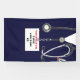 Creative medical school graduation congratulations banner for doctor party. Edit text to add his or her name and medical credentials.