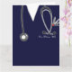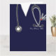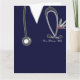 Amusing medical school graduation cards featuring hospital scrubs with a Swiss Army knife in the pocket. Edit text to add doctor's name.
