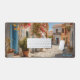 Bring the serenity of this view from a street into your workspace with this exquisite desk mat. Personalize it with a name printed on the lower right corner. This mat features a view of a street from a Mediterranean island street with its colorful doors and blinds and plants lovingly cared for by the content folk with a high-quality print from a high definition graphic. It provides a smooth and comfortable surface for your work for your laptop, keyboard and mouse. It can also transform your workbench with a stylish and elegant touch. Perfectly suited for all creators, artists, writers and anyone inspired.