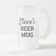 Personalized Mens Frosted Glass Beer Mug makes a great gift idea for a beer drinker. Both sides of the mug have name in black script lettering followed by "Beer Mug" in bold black font. This can be given as a birthday, Father's Day or Christmas gift.