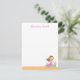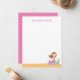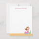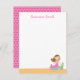 This custom stationery for kids features a sweet mermaid in pink. She had light brown hair and sits on a rock with her pink starfish friend. This stationery can be personalized with a name. Feel free to change the font and font color if you'd like. The back side features a pink scalloped pattern.