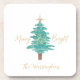 Personalized "Merry and Bright" Watercolor Tree Beverage Coaster