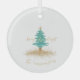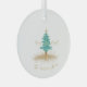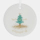 Celebrate the season with this elegant personalized Christmas ornament featuring an original watercolor Christmas tree topped with a golden star. The words “Merry & Bright” are written in graceful gold script, and you can customize the name or family name below to make it uniquely yours.