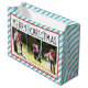 Personalized Merry Christmas aqua stripes photo Large Gift Bag