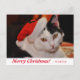 Personalized Merry Christmas Black and White Cat in a Santa Hat Postcard