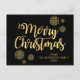 Personalized Merry Christmas Black Gold Glitter Holiday Postcard