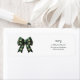 Add a festive and elegant touch to your holiday mail with this personalized Merry Christmas return address label featuring a classic green plaid bow on a soft white textured background. This timeless Christmas design is perfect for sealing envelopes, holiday cards, party invitations, gift boxes, and small business Christmas orders.