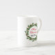 Personalized Merry Christmas Holly Wreath Bone China Mug